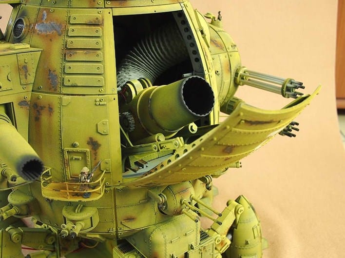 Criado pela empresa Machination Studio, o protótipo do HMC Boudicca, também conhecido como Codename Colossus é um tanque de guerra feito inteiramente de impressões 3D. O “brinquedinho” de apenas 50 centÃmetros de altura é composto por reproduções de canhões (incluindo um retrátil), metralhadoras com movimentos realistas e miniaturas de soldados dispostos pelo tanque. Como se tudo isso não fosse suficiente o tanque se move lentamente sob oito “patas” articuladas.